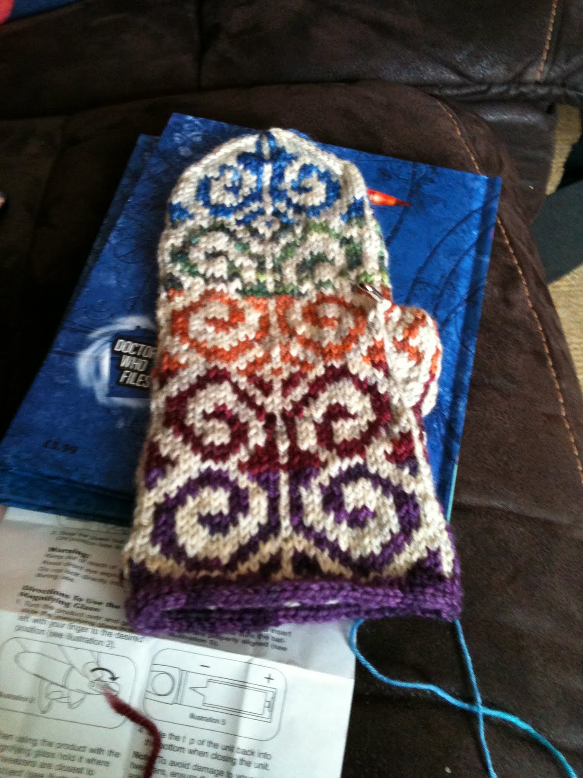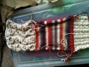 Fiddlestick mittens- this is a project I would not have attempted if my friend in Canada had not sent it to me. I am loving it and my stranding is pretty impressive even if I do say so myself.