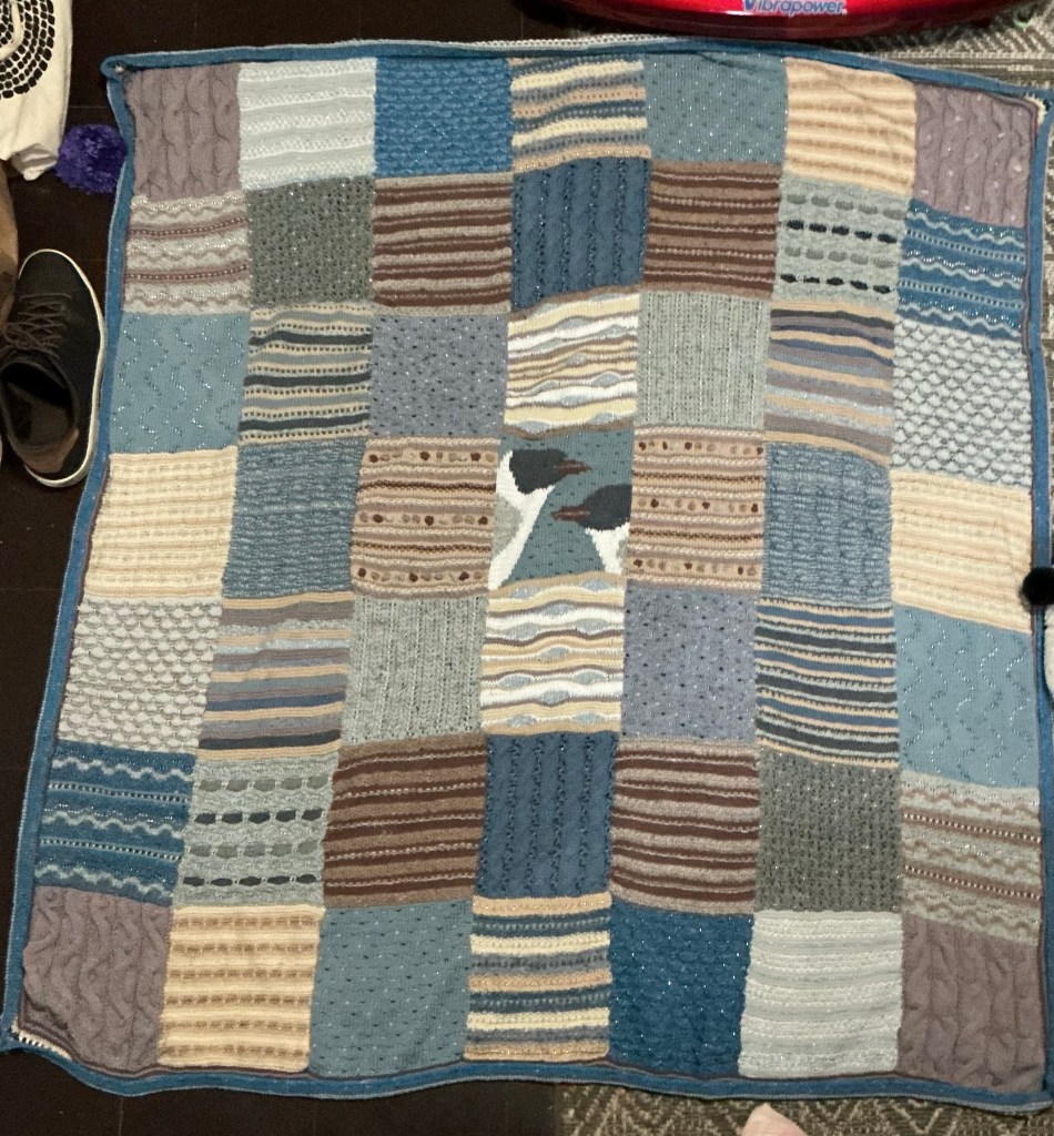 I have finally finished last years mystery blanket. I did a mixture of option one and two squares but decided to do a picture square for the centre as I felt it needed it to pull it together. Really enjoyed knitting this and I am also up to date with this years blanket squares.