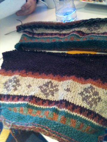I have just had a wonderful relaxing time aboard the cruise liner Celebrity Eclipse. It was four nights of pure rest and relaxation. Of course I took my knitting with me. Originally I was going to take the socks to knit but I got back into Dominika the day before so I took that too. I only took the sleeves but am over halfway on both and should finish them by tomorrow. Then it’s the blocking and sewing. It is such a nice fabric once knitted that I have decided to line it. This will make it more wearable and hopefully last longer. I have some nice cotton fabric in the stash which I think will go perfectly. Progress on sleeves so far.