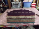 Well I am pleased to announce that Dominika from Rowan Knitting Magazine 48 is finally finished, well all bar the blocking and sewing. I also decided that as the knitted fabric was so nice I want to line it. In my stash I have the perfect fabric colour wise and have cut it out ready . The sleeve linings will be in a plain lining fabric as I didn’t have enough of the Cotton. One front and the back have been blocked so once the rest is done I can sew it all together. Hopefully this will happen before Monday but I’m not going to rush it so we shall see. I really enjoyed knitting this and love the yarn. Rowan Felted Tweed Aran a dream to knit with. My only minor complaint is that I’m not over keen on the moss stitch top of the sleeve.