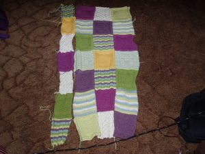 If this period of waking up in the middle of the night keeps up I may have to think about finding a night job instead of a day job. The only good thing about being wide awake in the wee hours is that I get to catch on on my knitting , television and maybe read a book. On the needles at the moment is still the Building Blocks blanket for baby Jones. I have just finished the fourth of seven strips and am really pleased with the way it looks. However, I am becoming a tad bored with it. I have managed to knit a couple of sets of bootees inbetween sqaures. I must get it finished then I can relax a bit.